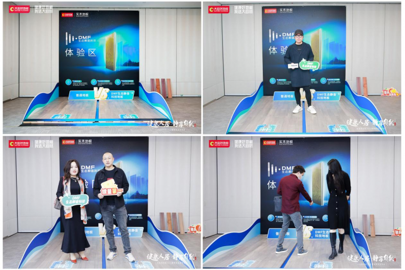 活動現(xiàn)場,大自然地板誠邀權威媒體、嘉賓前往DMF靜音空間體驗DMF生態(tài)靜音科技地板與普通地板的差別?,F(xiàn)場通過兩個不同區(qū)域的測試,明顯可見采用DMF生態(tài)靜音科技的地板穩(wěn)定無響聲;而普通地板踩上去則發(fā)出嘎吱的響聲,兩者產(chǎn)生了鮮明對比?,F(xiàn)場實際體驗之后,大自然DMF生態(tài)靜音科技新品得到在場權威媒體、嘉賓的高度認可。