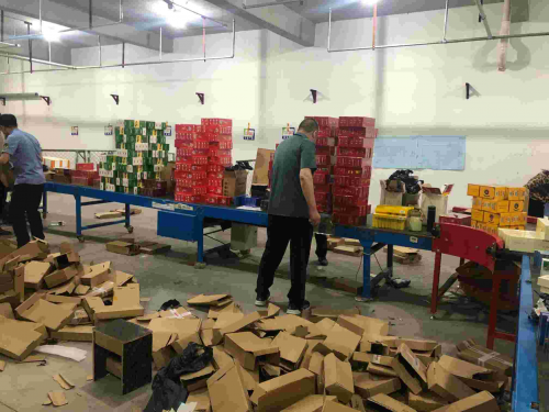 圖為在物流寄遞企業(yè)查獲的卷煙案件現(xiàn)場