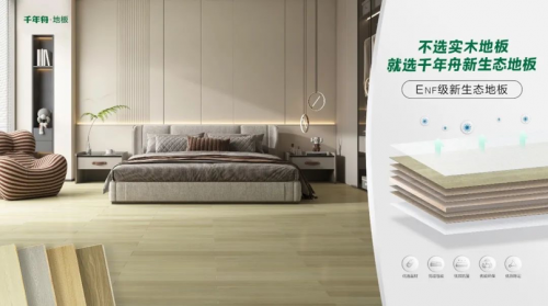 千年舟ENF板材產品不斷豐富,品類也在不斷擴展,近期推出的ENF級新生態地板是一種新實木結構地板,以紋理通直的優質松木為基礎芯材,天然健康耐用,質地堅硬,握釘力強,地板18毫米厚度,達到實木地板規格尺寸,盡顯實木地板的質感。三氧化二鋁金剛耐磨生態面形成納米級保護膜,具有超強耐磨性能,堅固耐污,耐燙耐劃。且生態抗菌面可有效抗菌,抗菌率達99%以上,凈化空氣環境。值得關注的是,千年舟ENF級新生態地板攜手世界級裝飾紙設計機構,選用國際及國內大品牌三聚氰胺紙張,設計時尚,緊隨國際家居潮流,仿生圖案,花色多樣,匹配各種主流家居裝修風格,充分滿足用戶個性化需求。