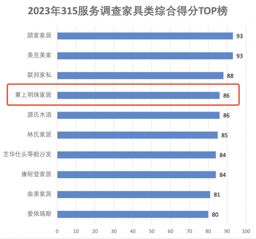 在這場行業品質服務的考核中,掌上明珠家居歷經“2023網易家居315服務調查”層層考驗,以家具類綜合得分榜第四名的好成績,獲得了專業媒體和消費市場一致認可,以榜樣精神引領行業發展,以服務質量成就優秀口碑!