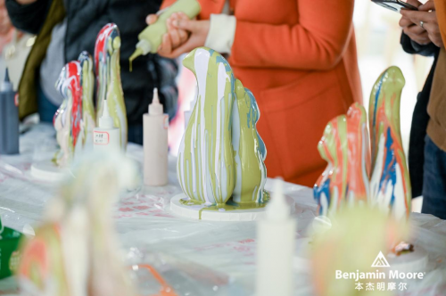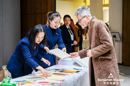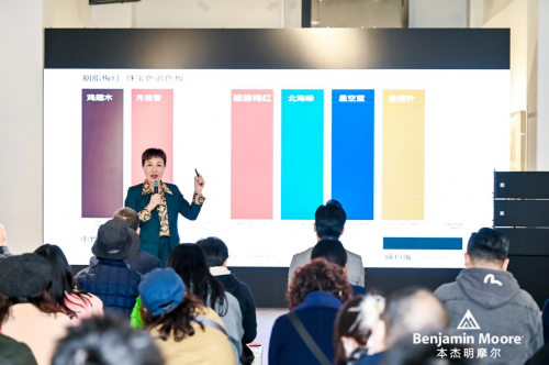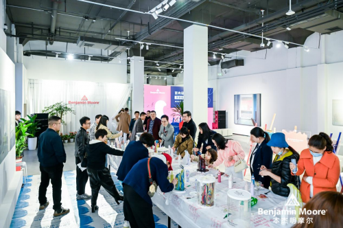 進(jìn)入現(xiàn)場會發(fā)現(xiàn),不只是簡單地簽到,而是要在入口處領(lǐng)取專屬簽到板,進(jìn)行創(chuàng)意DIY。隨后沿著外場動線,就能前往2023室內(nèi)流行色彩趨勢展區(qū),此次打破了“只是涂料”的品牌局限,采用了多樣化的跨界方式,將音樂、色彩和潮玩完美融合,本杰明摩爾二郎紅星體驗店投資人王亞女士表示希望通過活動,深入交流和分享,挖掘和分析用戶的需求和痛點,賦予色彩與生活更多可能 !