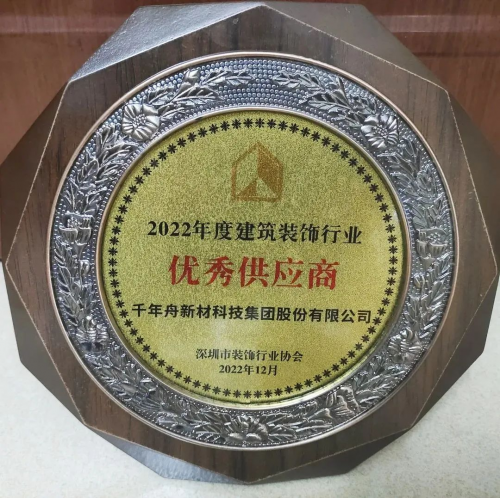 近日,深圳市裝飾行業(yè)協(xié)會舉辦的“建筑裝飾行業(yè)采購大會暨優(yōu)秀材料供應商頒獎盛典”上,千年舟得到裝飾行業(yè)各專家評委一致認可,喜獲2022年度建筑裝飾行業(yè)木工板材類“優(yōu)秀供應商”獎。細數(shù)過往,此類獎項比比皆是。
