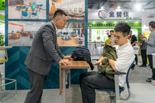 作為一家專業的學校家具產品供應商,KI展示了最新的教育家具產品和技術。“吸睛”的學習2號椅、Ruckus系列和階梯教室固定座椅等產品引觀眾圍觀紛紛體驗。KI產品通過細節設計,從高度、角度等方面進行調節,滿足不同年齡段學生使用,適應不同教學空間需求。同時,人體工學設計幫助學生保持良好坐姿,為學生的健康成長提供科學的保障。