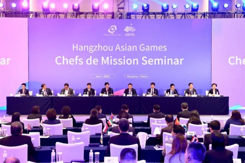 4月25日上午,杭州亞運(yùn)會(huì)代表團(tuán)團(tuán)長(zhǎng)大會(huì)在杭州開幕,來自亞洲45個(gè)國(guó)家(地區(qū))的奧委會(huì)代表參會(huì)。