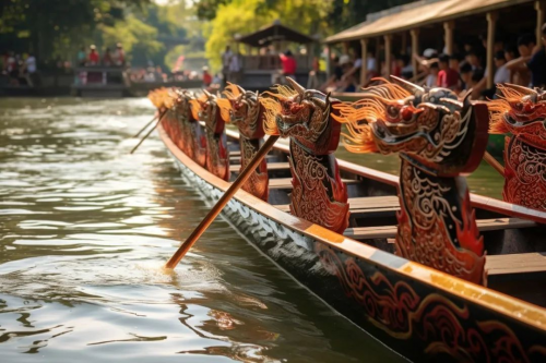 在二十一世紀(jì)的今天,賽龍舟不再只是單純?yōu)榧o(jì)念屈原,它已由最初傳說中的引舟競(jìng)渡演變成為最富激情、充分體現(xiàn)中華民族努力奮爭(zhēng)、積極進(jìn)取、拼搏向上的民族精神。