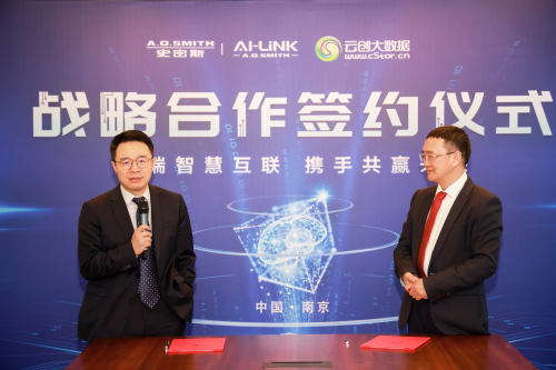 【5月9日 南京】A.O.史密斯和云創大數據正式簽署戰略合作協議。雙方將攜手同行,在人工智能生成式大模型領域進行深度合作。在AI技術大爆發的當下,如何用好工具為人們美好生活提供智慧解決方案,是A.O.史密斯AI-LiNK智慧互聯戰略落地的重要使命。A.O.史密斯(中國)邱步總裁、云創大數據劉鵬總裁等雙方領導共同出席簽約儀式。
