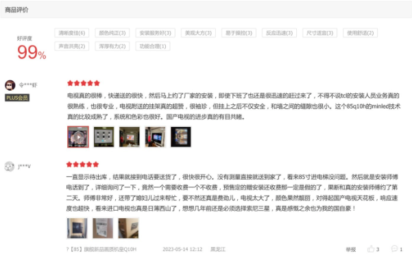 從真實(shí)的用戶口碑來(lái)看,我們也能看到消費(fèi)者對(duì)于TCL Q10H的認(rèn)可,一方面是說(shuō)Q10H的畫(huà)質(zhì)表現(xiàn)很好,系統(tǒng)體驗(yàn)也不錯(cuò),另一方面也提到了TCL的安裝服務(wù)很好,這基本也說(shuō)明從購(gòu)買、安裝到體驗(yàn)的全流程服務(wù)中,消費(fèi)者都是很滿意的。