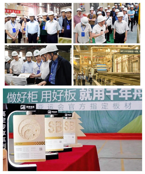 上午9時,由邳州市人大常委會主任呂巖、中國木材與木制品流通協會會長李佳峰、中國林產工業協會副會長錢小瑜牽頭組成的百人專業考察團隊,在千年舟集團副總裁方玉祥、千年舟集團江蘇澳思柏恩總經理毛善鋒陪同下近距離參觀邳州工廠的迪芬巴赫、亞聯生產線,直觀感受工業4.0智能制造的先進與高效,實地觀摩亞運品質好板的生產鏈路。
