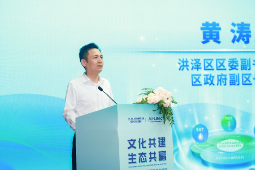 在主旨發(fā)言環(huán)節(jié),淮安市洪澤區(qū)委副書記、區(qū)政府副區(qū)長(zhǎng)黃濤在致辭中表示,洪澤是生態(tài)福地也是發(fā)展熱土,AO史密斯產(chǎn)業(yè)學(xué)院落地于此,實(shí)現(xiàn)了運(yùn)營(yíng)鏈和產(chǎn)業(yè)鏈的精準(zhǔn)對(duì)接,他寄語此次共建活動(dòng)能碰撞出深化合作發(fā)展的新觀點(diǎn)新思路。