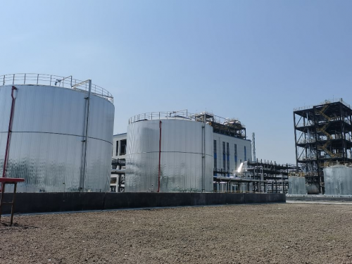 安裝階段正值8月酷暑天氣,面臨連續(xù)40℃以上高溫天氣,現(xiàn)場防暑降溫工作是面臨的一個嚴(yán)峻考驗,同時混凝土框架裝置,層高8m,與傳統(tǒng)化工裝置相比,設(shè)備數(shù)量多、管線數(shù)量多,場地小,作業(yè)面受限,面對以上困難,項目采用錯峰施工,避開高溫時段。同時,項目始終踐行“綠色”施工理念,作為項目重點的PBAT主裝置三層核心設(shè)備終縮聚釜和兩臺增粘釜的安裝,項目團(tuán)隊采用模塊化施工,在地面完成鋼結(jié)構(gòu)框架安裝再進(jìn)行吊裝,不僅能夠有效縮短施工時間,保證施工質(zhì)量,減少了高空作業(yè)的施工風(fēng)險,減少交叉作業(yè),實現(xiàn)“綠色”施工。