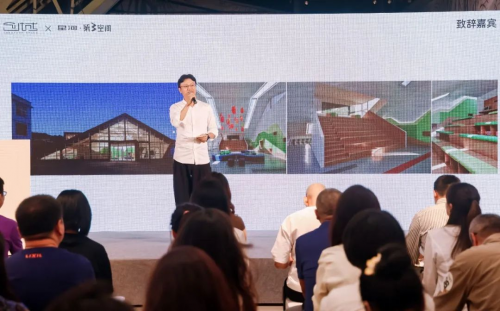 秦岳明先生作為深圳市室內建筑設計行業協會代表上臺做了講話。他代表協會對于第三空間卓域樓公益計劃的開展給予了充分的肯定和支持,也希望行業內能有更多的愛心企業和愛心人士共同參與到公益事業中來,用設計支持鄉村美學教育。