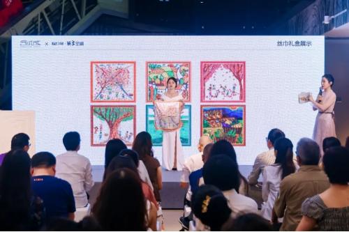 本次拍賣會上,舉辦方送出的愛心小禮盒受到了大家的的喜愛和關注,這是一份非常特別有紀念意義的禮物——彝鄉孩子們畫作的同款絲巾,構圖優美,色彩艷麗,讓大家從小小的絲巾里看到了彝鄉孩子眼中不一樣的多彩世界。