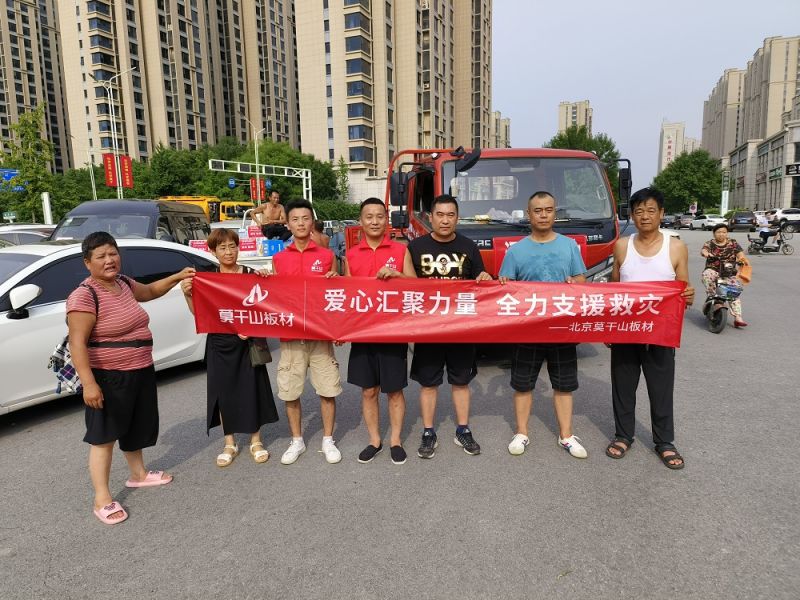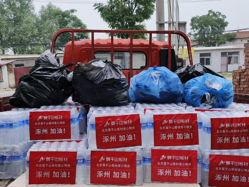 7月29日起,京津冀連續遭遇強降雨,北京門頭溝、房山及河北涿州等地受災嚴重。8月4日莫干山板材北京區域經銷商代表攜團隊第一時間加持災后重建工作,8月14日莫干山板材總部籌備的愛心物資亦到達抗洪一線。