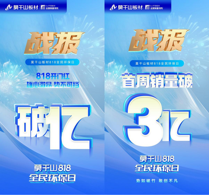 從“超級品牌日”到“818全民環保日”,云峰莫干山在煥新國人家裝標準的落地活動中持續吸睛,全國門店屢創佳績,顛覆性創新營銷手段引發行業變革。而今年8月云峰莫干山第二屆“818全民環保日”再次火爆來襲,其中莫干山板材作為ENF級全品類環保的核心品類之一,在本次全國性活動中取得了非凡成就,終端門店引發萬人搶購,為綠色健康環保人居生活提供了更多可能。
