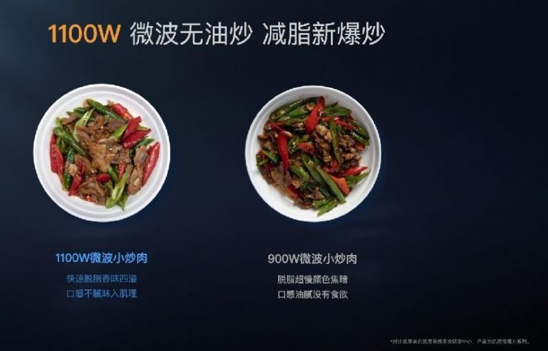 700+天深度研發(fā),1000+次試驗(yàn)論證,2700+菜單嘗試,凱度開創(chuàng)性研制的1100W黃金6檔,無油烹飪也能達(dá)到明火爆炒的效果,如小炒肉、紅燒肉等諸多菜品的實(shí)際烹飪效果都遠(yuǎn)超普通微蒸烤,焦香美味的口感可與明火媲美。