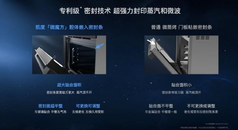 專利級(jí)的腔體密封技術(shù),是凱度的最新成果,不同于行業(yè)普遍使用的門板粘貼密封條,采用密封條腔體內(nèi)置,以超強(qiáng)力封印蒸汽和微波,最大程度保證烹飪能量不流失,尤其微波的防漏效果可以提升3倍,呵護(hù)孕媽老幼健康,讓每次烹飪加倍安心。