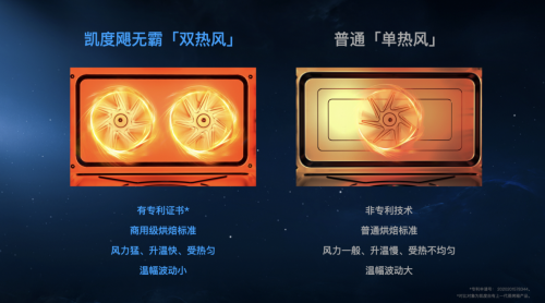 2017年,為了達(dá)到更均勻的烘烤效果,凱度研發(fā)出了雙熱風(fēng)技術(shù),并在2019年應(yīng)用于蒸烤箱,革新行業(yè)新標(biāo)準(zhǔn);