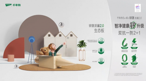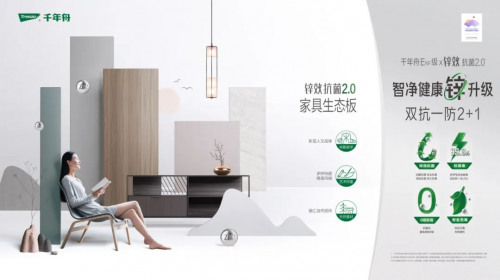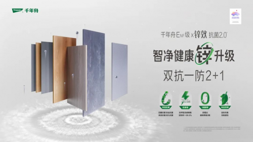 煥新起航,全鋅升級(jí)。千年舟鋅效抗菌2.0板材為守護(hù)綠色健康家全新面世,雙抗一防,抗菌、抗病毒、防霉為消費(fèi)者提供更加優(yōu)質(zhì)的抗菌產(chǎn)品,提供更加健康、環(huán)保、舒適的家居環(huán)境。