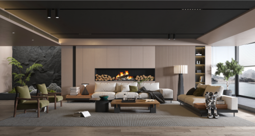 千舟風渡以烏篷船為設計元素,搭配啞光棕色色調,極具包容性,自然舒緩的層次源自大自然的質樸,為空間帶來溫暖和煦的視覺享受,樸實無華卻又不失靜雅之美,呈現出一個自然優雅的家居空間。