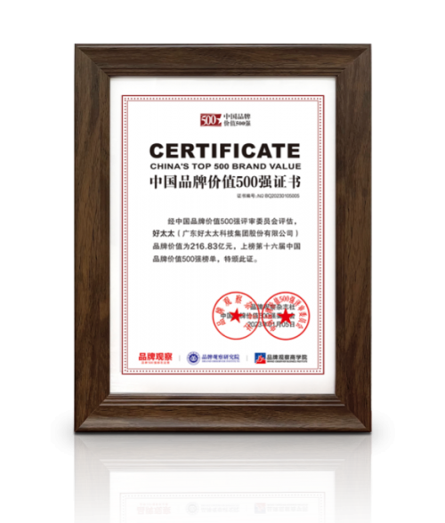 一直以來,好太太以“成為全球領先的智能家居企業”為愿景,堅持高效研發和持續創新。以“用戶驅動+差異化技術驅動”的雙驅動模式,聚焦用戶需求,進行創新產品開發、先行平臺研究、關鍵零部件攻關、差異化賣點布局以及基本性能提升,保持差異化領先的技術優勢和產品競爭力。目前擁有人工智能、智能物聯、智能家居等方面的專利1200余項,獲得了3項國家專利優秀獎,連續5次被認定為“高新技術企業”,2022年榮獲廣州市市長質量獎。