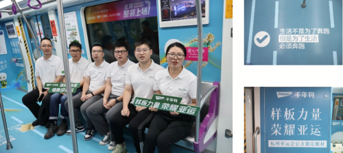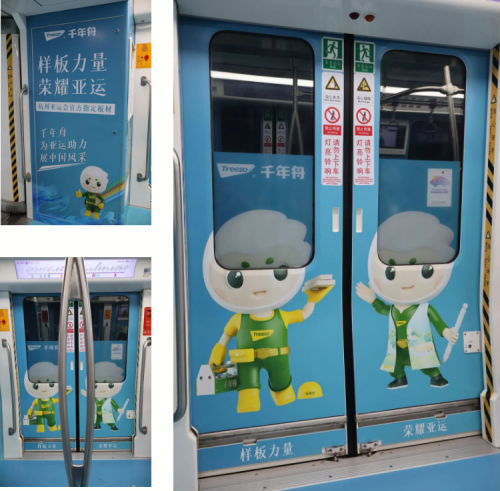 作為杭州第19屆亞運會官方指定板材,千年舟對亞運精神、亞運理念高度認同,并始終以身為東道主的飽滿熱情為家鄉舉辦的亞運盛事提供積極支持。杭州是千年舟的誕生之地,千年舟的成長壯大一直與杭州發展同頻共振,在亞運會期間,千年舟的以遍布地鐵專列、亞運宣講專車、杭州東站、杭州南站、蕭山高速服務站等各處的身影,打造出流動的風景線,大力宣揚亞運精神,為亞運盛事助威。