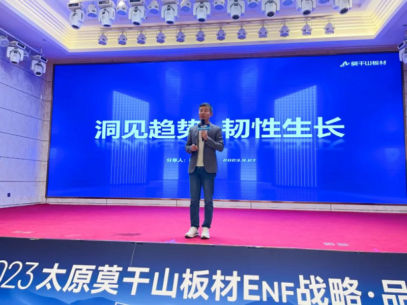會(huì)議伊始,莫干山板材經(jīng)銷商代表山西太原越久龍木業(yè)有限公司總經(jīng)理張菊汀先生致歡迎辭。張總表示,這次的會(huì)議是一個(gè)重要的平臺,讓我們聚集在一起,分享經(jīng)驗(yàn)、展望未來、共同探討如何進(jìn)一步通過“ENF產(chǎn)品升級、市場管理、店面升級”三大要點(diǎn)來加強(qiáng)合作、推動(dòng)業(yè)務(wù)的發(fā)展。我們的目標(biāo)是通過深入交流,共同找到解決問題和取得更好成果的路徑。