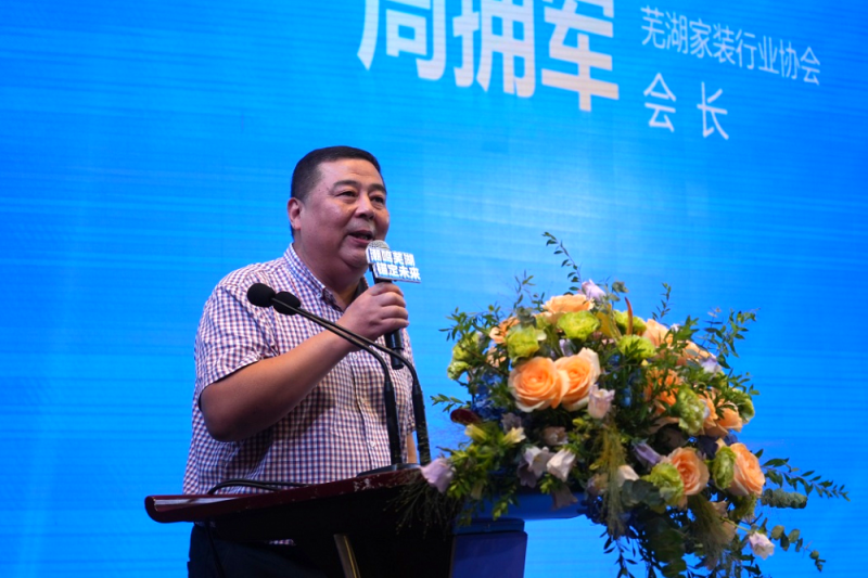 隨后,在會上蕪湖家裝行業協會會長周擁軍先生站在行業協會的角度剖析了行業現狀,呼吁在座各位企業家合作共贏,為企業賦能,共同推動蕪湖家裝行業的進一步發展。