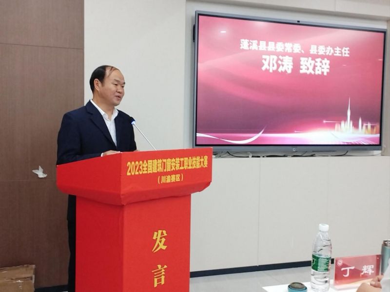 蓬溪縣縣委常委、縣委辦主任鄧濤同志,代表中共蓬溪縣委、縣政府,向百忙之中抽出時(shí)間蒞臨蓬溪的各位來賓表示熱烈的歡迎!向長期以來關(guān)心支持蓬溪發(fā)展的各界人士表示衷心的感謝!經(jīng)過多年不輟耕耘,蓬溪成功創(chuàng)建“中國門都”,擁有全國唯一縣級(jí)門業(yè)產(chǎn)業(yè)集群特色,是西南最大的門業(yè)和智能家居生產(chǎn)基地。此次大賽在蓬溪舉辦,希望大賽組織機(jī)構(gòu)和全體工作人員以一流的競賽組織、一流的服務(wù)保障,將本次技能大賽辦好辦精,讓大家賓至如歸、難以忘懷。同時(shí)也希望各位來賓多到蓬溪走走看看、傳經(jīng)送寶、投資興業(yè),蓬溪將竭力為大家服好務(wù),讓大家在蓬溪放心投資、安心創(chuàng)業(yè)、舒心生活!