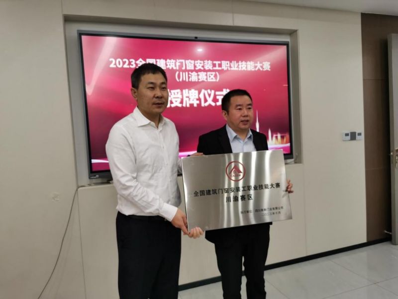 隨后,丁輝秘書長為四川新新門業(yè)頒發(fā)全國建筑門窗安裝工職業(yè)技能大賽川渝賽區(qū)牌匾。