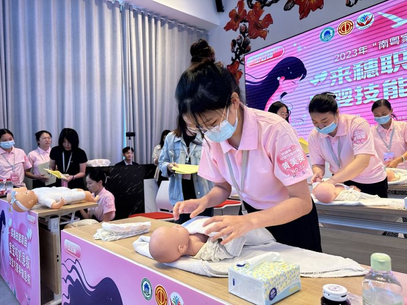 比賽現場精心布置,使比賽更加貼近實際工作情境,全方位考核選手的綜合素質。本次競賽不僅為母嬰護理行業從業的來穗職工提供了一個相互切磋、展示技藝、交流經驗的平臺,更進一步提高其職業素養和專業技能,推動白云區母嬰護理行業的高質量發展。