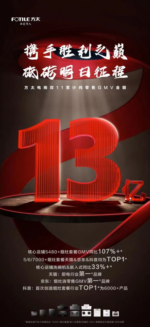 “用創新科技重塑中國廚房價值”!2023年的雙十一,方太品牌再傳“捷報”:10月23日-11月11日期間,方太全品類產品在電商平臺累計純零售GMV銷售額高達13億,方太洗碗機品類商品更是在天貓官方旗艦店及京東自營店鋪累計銷售額同比增長58%,推動方太洗碗機產品全年銷量再創新高,并繼續保持高速增長,持續擴大市場份額。