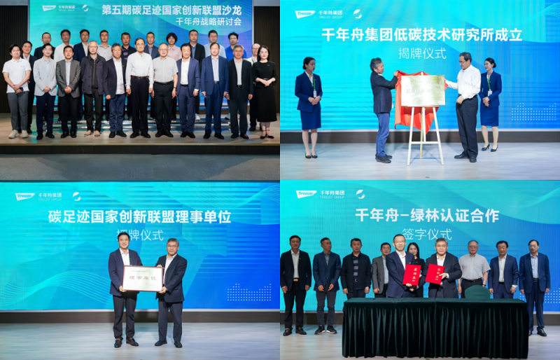 在今年10月份的以“碳達(dá)峰,碳中和”為主題的“第5期碳足跡國(guó)家創(chuàng)新聯(lián)盟主題沙龍暨千年舟集團(tuán)雙碳戰(zhàn)略研討會(huì)”上,千年舟“低碳技術(shù)研究所”成立、碳足跡國(guó)家創(chuàng)新聯(lián)盟理事單位授牌、綠林-千年舟合作協(xié)議簽訂,拉開(kāi)了雙碳戰(zhàn)略規(guī)劃全面推進(jìn)的序幕。
