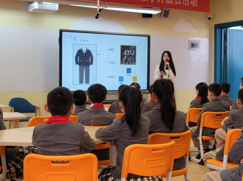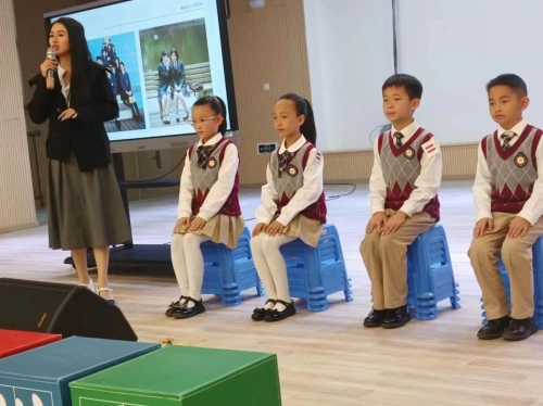 校服是學(xué)生的服裝,它不僅是一套服飾,還是媒介,把一個(gè)學(xué)校的理念和精神價(jià)值織在其中,浸染文化,自然地彰顯出學(xué)校的獨(dú)特性和氣質(zhì)美。它既是流動(dòng)的學(xué)校文化名片,也是學(xué)生隱性的學(xué)習(xí)資源。禮儀課堂上,美育老師分別從著裝禮儀、儀態(tài)禮儀、校園禮儀三方面進(jìn)行講解,學(xué)生掌握了制式西裝、襯衫、鞋襪、配飾的合理搭配,并從形態(tài)方面積極參與練習(xí),明白了“不學(xué)禮,無以立”,儀態(tài)是表現(xiàn)個(gè)人涵養(yǎng)的一面鏡子,也是構(gòu)成一個(gè)人外在美好的主要因素,外在的禮儀是內(nèi)心深處尊重的表達(dá)。
