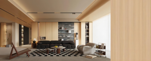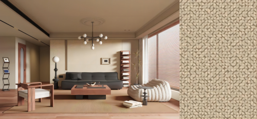 靈感來自奢侈品級壁布的紋理,汲取高端壁布的肌理變化,疊加凹凸有致的幾何紋理,高低錯落間,飾面花色有了不一樣的細膩感受。
