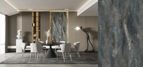 細膩、夢幻的紋理營造出深邃而神秘的星空效果,星光璀璨令人驚嘆,如置身浩瀚宇宙,萬物不過俯仰之間。在家居生活中,亦能展現其包羅萬象的美。