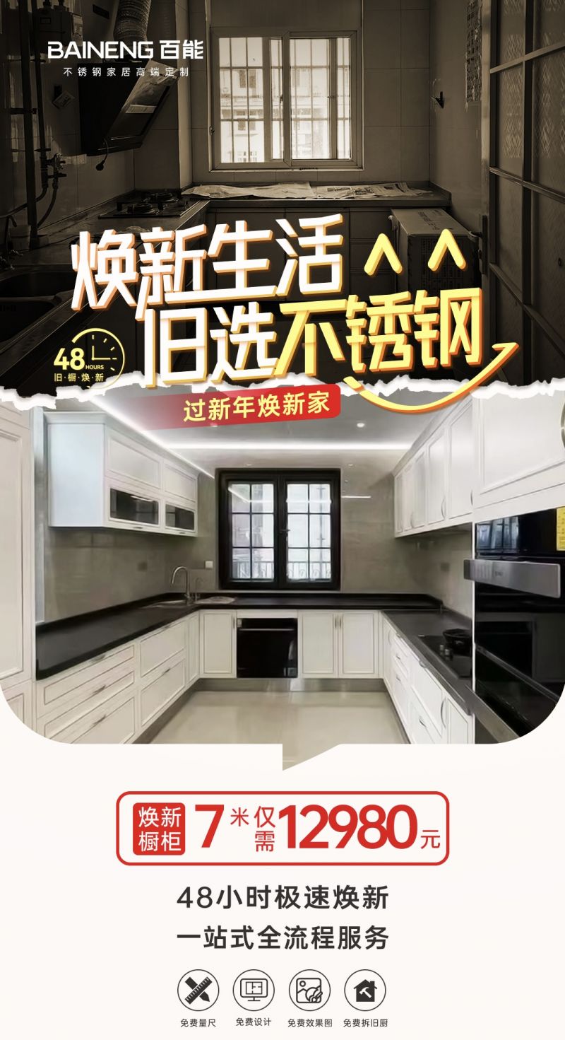 2023年11月25日,百能家居發(fā)起舊廚煥新活動(dòng),該活動(dòng)是不銹鋼家居行業(yè)首個(gè)以舊廚改造為主題的活動(dòng),旨在為客戶解決舊廚房常見的痛點(diǎn)問題,為人們帶來高品質(zhì)的家居生活。