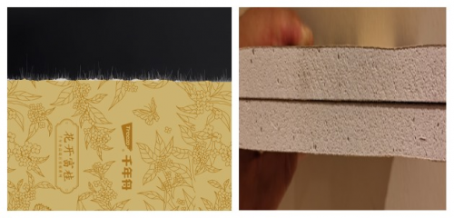 其采用獨(dú)創(chuàng)的膠凝硬板技術(shù),面密度≥7㎏/㎡,板芯發(fā)泡更加細(xì)密均勻,密實(shí)度更高。同時(shí)板芯添加增強(qiáng)纖維,每平增加30-40g,厚度9.8-10mm,為產(chǎn)品的高強(qiáng)度、防開裂、抗變形、抗沖擊提供了堅(jiān)實(shí)的保障。