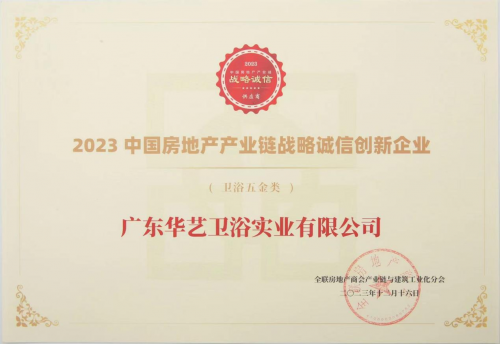 華藝衛浴榮獲“2023中國房地產產業鏈戰略誠信品質服務供應商”