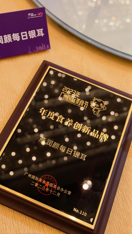 2024年1月3日,以“新開局 創(chuàng)未來”為主題的2023年廣州國際美食節(jié)甄選品牌年度發(fā)布盛典暨2024餐飲文旅產(chǎn)業(yè)交流饗宴隆重舉行。燕潤顏每日銀耳榮獲2023年廣州國際美食節(jié)年度食養(yǎng)創(chuàng)新品牌。