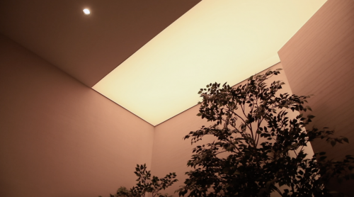 入口以朱砂色調為主,立面光源采用歐普UTMOST最新產品SDL燈帶,立面燈槽的細節設計讓內部光線擴散的更加柔和,使得其質樸自然的特性更加突出,增添了一抹精巧細膩的感覺,仿佛是一幅精致的藝術品。