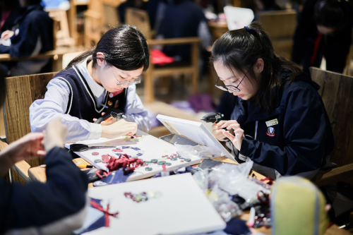 上海市甘泉外國語中學(xué)開展服育課程上,學(xué)生以70周年校慶為主題,用校服裁損布料制作藝術(shù)品,美的啟蒙,也如同一顆顆小小的種子,播種在了孩子的心中。