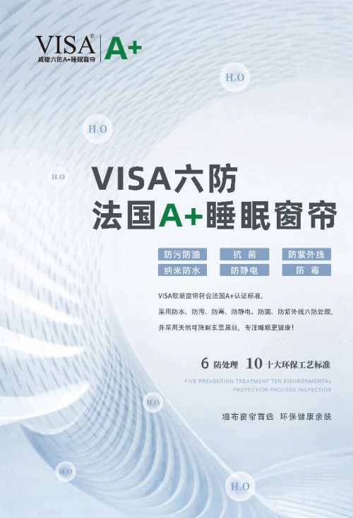 VISA高端軟裝一直致力于為消費(fèi)者提供高品質(zhì)、健康環(huán)保的家居產(chǎn)品。從窗簾到墻布,從藝術(shù)漆到墻板,從家具到飾品,VISA高端軟裝都力求做到精益求精。相信在未來的軟裝大家居市場中,VISA六防A+睡眠窗簾將成為引領(lǐng)潮流的重要力量,為更多家庭帶來健康、舒適和美好的居住體驗(yàn)。