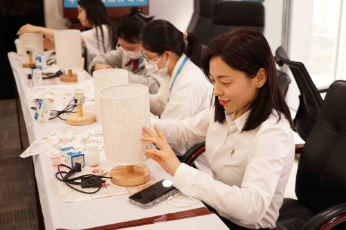 在南方公司總部,手工老師為大家詳細(xì)講解了蝶骨巴特的歷史淵源,并現(xiàn)場演示了制作方法。蝶骨巴特是一種裁剪紙張,是以裱貼為制作方式的工藝技術(shù),其獨(dú)特的造型和精美的工藝一直深受人們喜愛。隨后,手工老師為大家分發(fā)了豐富的材料,包括各式花樣的紙張、膠水、剪刀和燈具等,并在燈面構(gòu)圖、配花配色設(shè)計、制作方面進(jìn)行手把手指導(dǎo)。