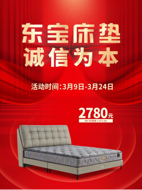 春風(fēng)送暖,萬(wàn)象更新。為配合大家的家居煥新大計(jì),3月9日-3月24日,東寶床墊舉行開(kāi)門紅活動(dòng),推出兩款高性價(jià)比的產(chǎn)品,回饋廣大消費(fèi)者的支持與認(rèn)可。