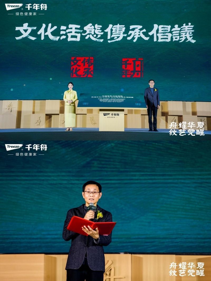 千年舟紀錄片《舟渚問道》,再現了千年舟對傳統文化的深度挖掘與傳承,全場嘉賓共同見證文化傳承的時代接力。以古鑒今,重塑內核。從一張好板到一室幾柜,從一方居所到一處建筑,千年舟不斷傳承傳統文化之薪火,將文化融于產品,以文化鏈接萬物。