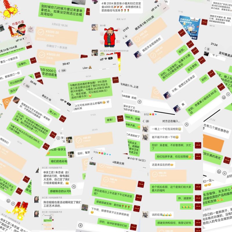 落霞一片千峰上,夕陽滿是開門紅。忽聞橘州傳捷報,佳日欣逢麗句頌。3月15日晚,期盼已久的涂工匠化州店3.15線上活動如約而至?,F場新老客戶好評如潮,訂單蜂擁而至,奏響新春華彩序曲,譜寫首季開門紅!
