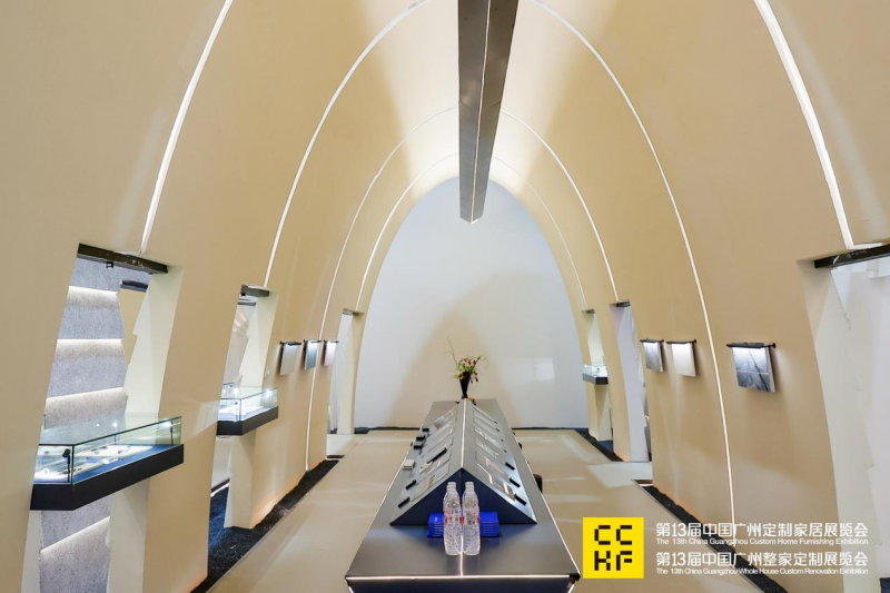 展會上,麗炫通過更具科技感、藝術感的場景化整體解決方案,立體呈現了全屋定制燈光系統,營造不同的家居氛圍。麗炫特邀業內知名設計事務所加減智庫聯袂打造的「時光博物館」主題展廳,汲取了遠古穴居生活鑿壁透光的靈感,主建筑體采用懸鏈線拱結構設計,在致敬經典的同時融入現代審美,將光的藝術展現得淋漓盡致。