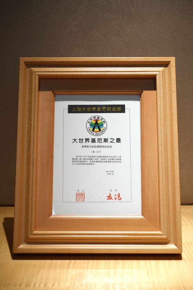 此次品酒師培訓活動獲得大世界基尼斯之最頒發(fā)規(guī)模品酒師培訓活動。許多業(yè)內(nèi)人士表示,云倉酒莊此次活動的成功舉辦,不僅為品酒師們提供了一個學習交流的機會,也為整個酒行業(yè)注入了新的活力和動力。他們相信,通過品酒師培訓,葡萄酒文化將在國內(nèi)得到更加廣泛的傳播和認可。