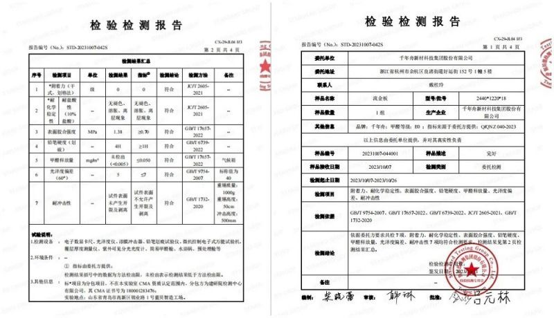 流金板基材采用環保型膠水,在生產過程中不添加甲醛,能夠從源頭上解決甲醛污染問題,成品板材環保性能優越,環保等級可達到F4星級,更健康更環保。