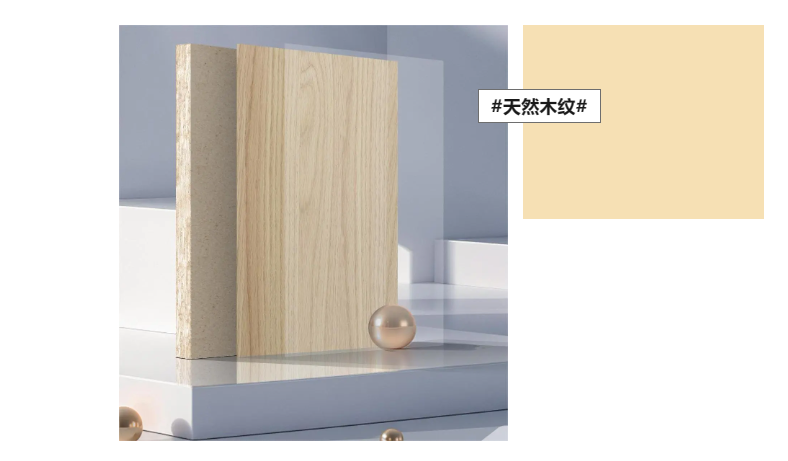 嚴選性能穩定的澳松板、LSB高能家居板等為基材,表面壓貼自然實木感強的天然木皮或紋理逼真、色澤豐富的科技木皮,保留天然木材的色澤和紋理。